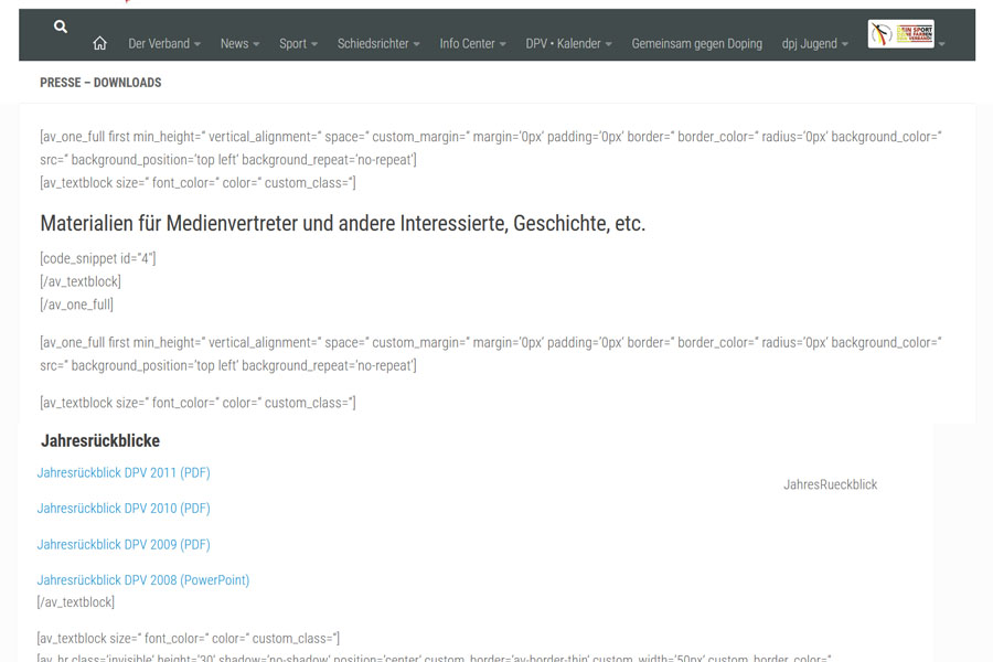 aktuelle Pressearbeit des DPV im Sommer 2025: kryptische Download-Seite, nicht funktionierende Links (Quelle: Screenshot DPV-Website)
